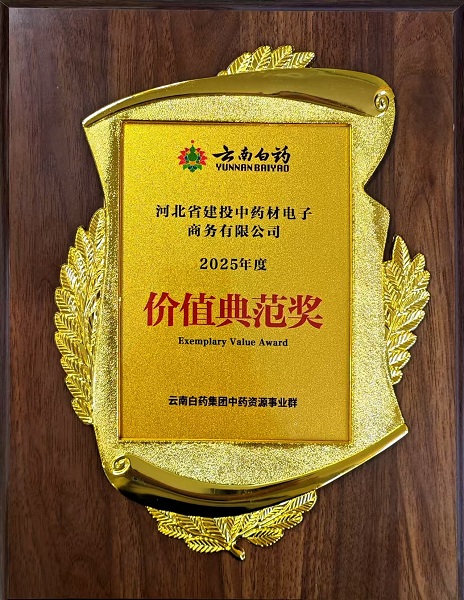会上,建投中药材公司(河北省中药材交易平台)凭借其在推动河北与云南两地中药材数智化平台达成产业合作创新的突出成就,荣获云南白药集团优质合作伙伴“价值典范奖”。