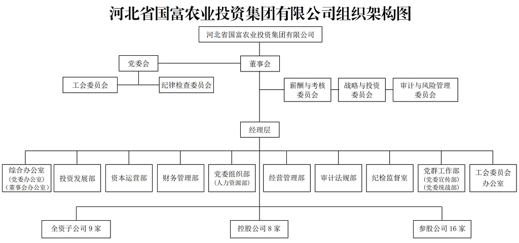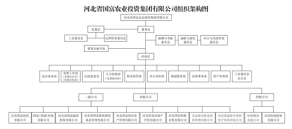 河北省国富农业投资集团有限公司成立于1992年,前身为河北省经济开发投资公司。2001年11月,经河北省人民政府批准,重组设立为河北省国富农业投资集团有限公司,注册资本3.34亿元。2017年3月,按照省政府安排全面划转至省国资委管理,是河北省国资委授权的竞争类国有资产授权经营机构。2024年7月,经省委、省政府同意,省国资委决定将河北国富投资划转至河北建投集团管理。
