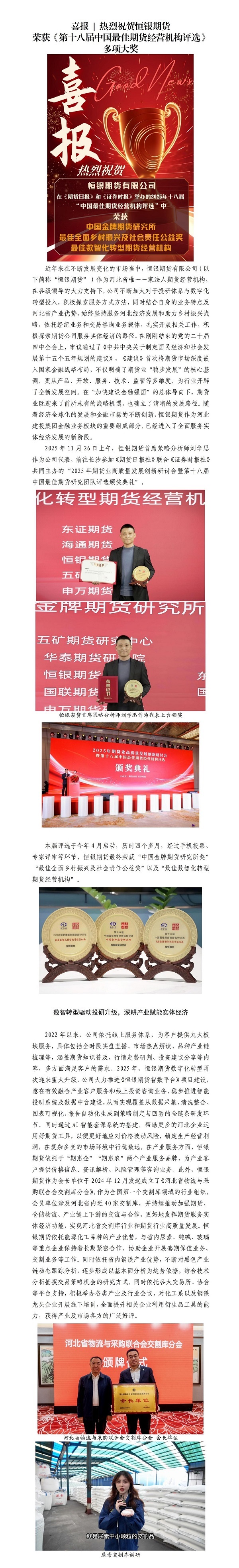 喜报 | 热烈祝贺恒银期货荣获《第十八届中国最佳期货经营机构评选》多项大奖
